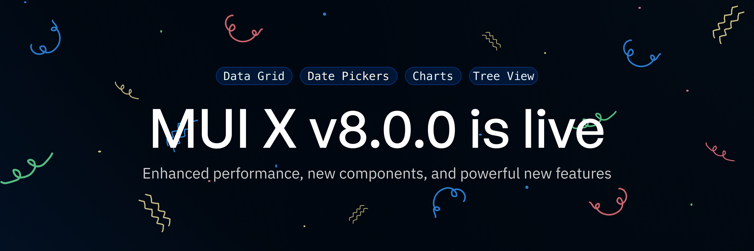 We are excited to announce the stable release of MUI X v8.0.0—packed with many new features, native ESM support alongside Material UI v7, and an improved license management experience.